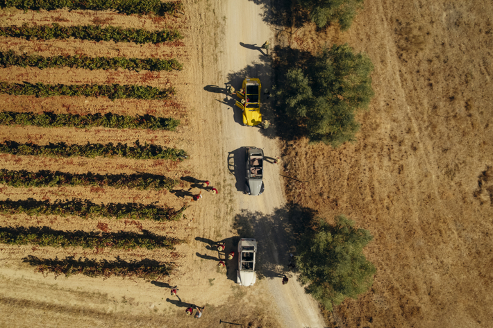 Sob o mote “Vindimas de Castelão: da Vinha ao Vinho”, o dia começou com uma animada receção, em que três carros Citroen 2CV despertaram, desde logo, a atenção dos presentes. Era neles que viajariam até à vinha – e assim foi, entre sons animados e muitas gargalhadas. Mas não sem antes “matarem o bicho”, com degustação de queijos, enchidos, doces e um inusitado e delicioso torricado de cebola roxa e cavala, acompanhados de uma breve introdução do anfitrião, nas palavras de Inês Franco, um dos rostos do projeto. Foi também neste momento que João Silvestre, diretor-geral da CVR Tejo, fez um enquadramento da região e da casta, recordando que a primeira vez que a CVR Tejo fizera uma prova didática de Castelão, em 2021, eram poucos os exemplares “ativos no mercado” em jeito de monocasta. Na altura, vieram à prova colheitas bastante antigas, algumas de vinhos já inexistentes. Nos dias de hoje, é já uma casta apetecível para os produtores da região, também impulsionados pela estratégia de promoção da mesma.